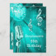 Personalisierte, elegante, individuelle 55. Geburtstagsfeier für Damen. Eine schöne aquamarin-weiße Geburtstagsparty lädt Frauen mit einem funky Retro-Disco-Spiegelball, glamourösem Kristall-Glitzer, Sequins, Juwelen, glitzernden musikalischen Noten / Musiknoten und einem coolen aquamarinen Vintagen Retro-Mikrofon auf einem Glitzern türkisblauen Licht und aquamarin Hintergrund ein. Chic, elegant, niedlich, mädchenhaft, modern mit trendigen, modischen Farben. Diese großartige, stilvolle, raffinierte, hübsche Retro-Diskothek lädt zu beiderseitigen Dekorationen ein. Perfekte Einladungen für ein Dinner Tanz Tanz oder Karaoke Singen Event. BITTE BEACHTEN SIE: Alle Einladungen auf Zazzle sind mit flachen gedruckten Bildern versehen. Wenn Sie Hilfe bei der Anpassung Ihres Produkts benötigen, kontaktieren Sie mich bitte über meinen Shop und ich werde Ihnen gerne weiterhelfen.