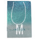 Aquamariner Funkelnd Glitzer Ombre Monogram Mittlere Geschenktüte