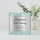Schaffen Sie sich Ihre eigene extravagante Geburtstagsfeier-Einladung für sie. Dekorative Imitate funkelnd, weiße und aquamarine Glitzer-Grafiken bilden einen oberen und unteren Rand. Die digitale Hintergrundkunst zeichnet sich durch einen glänzenden, blassgrauen Farbverlauf aus. Passen Sie die einladenden Schriftart-Farben oder -Stile an. Die luxuriösen Glitzern, Glanz und Glitzer werden mit künstlerischen Elementen geschaffen, die wie ein Foto gedruckt werden. Ein toller 40. Geburtstag lädt zu Ihrem besten Freund ein.