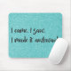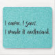 Fügen Sie eine amüsante Touch zu Ihrem Zuhause-Büro oder Arbeitsbereich mit einem Aquamarinen Glitzer "I made it schwierige" Mousepad. Mousepad Design enthält den Text "Ich kam. Ich habe gesehen. Ich machte es unangenehm." In einem handgeschriebenen Schriftart vor einem hellen Glitzer aquamarinen Hintergrund. Zusätzliche Geschenkartikel in diesem Design sowie eine Vielzahl von Farben.