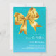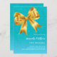 Moderne, aquamarine und blaue Imitate, Glitzer mit einem großen goldenen Bogen. Personalisieren und fügen Sie einen Namen und Party-Details hinzu.