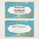Aquamariner Goldmarmor | Geschenkkarte Diese Geschenkgutkarte ist ideal für Berater, Kreative, Makeup Künstler, Salon Profis und solche in ähnlichen Branchen, die ihre Kunden belohnen möchten. Empfohlen wird die Auswahl eines hochwertigen, dicken oder Leinenpapiers. Für besondere Designwünsche kontaktieren Sie bitte den Designer. ©2010 Joshua Martin
