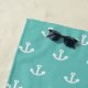 Aquamariner grüner Anker, weißes nautisches Monogr Strandtuch