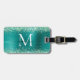Glam Eleganter Aquamariner grüner Glitzer Sparkle Pinselmetall, Girly Script Monogram Gepäckmarke