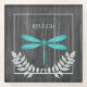 Schützen Sie Ihre Tisch- und Gegendecken mit einem Aquamarinen Dragonfly Rustic Personalisiert Glass Untersetzer. Im Untersetzer-Design erwartet Sie eine lebendige Libelle mit zarten Blättern und dunkelgrauem, rustikalem Holzboden. Zusätzliche Geschenkartikel in diesem Design sowie eine Vielzahl von Farben.