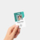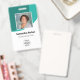 Personalisieren Sie diese vertikal aquamarinen türkisfarbenen Abzeichen mit einem Mitarbeiter-Foto, Firmenlogo, Bar-Code, Mitarbeiter-ID und Namen.