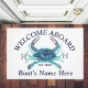 Nautical Boat Name Aquamarin Türkis Crab Willkommen Navy Blue Script Doormats & Rugs