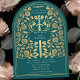 Set den Ton für Ihre mittelalterliche Fantasy-Hochzeit mit einem kühnen Bogen-Einladung-Design - ein großes Goldschwert umgeben von Blumen vor aquamarinem Hintergrund. Ideal für Paare, die von einer epischen, romantischen Feier träumen. Machen Sie Ihre Liebe von Anfang an legendär! HINWEIS: Das Gold in diesem Design ist KEINE echte Folie.