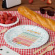 Hübscher aquamariner u. korallenroter Geburtstags-Kuchen-Party-Papier-Teller