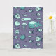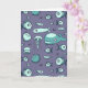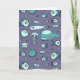 Aquamariner und blauer Tintenstift, gezeichnet von verschiedenen Meereslebewesen (einschließlich Fisch, Wal, Quallen und Pufffisch), auf einer leeren Grußkarte gedruckt.