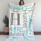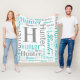 Aquamarin und grau mit weißem Hintergrund warme und gemütliche Decke mit personalisiertem Monogramm und Name Cloud Wort Art Design.