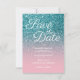Aquamariner und rosa Ombre Glitzer Save the Date Einladung