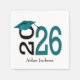 Aquamariner und schwarzer 2025-Abschluss mit Name Serviette
