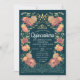 Feiern Sie Ihre Quinceañera in einem zauberhaften Garten! Diese Einladung enthält einen üppigen Rahmen an rosa und lila Blumen mit goldenen Akzenten vor einem aquamarinen Hintergrund, der Ihrem besonderen Tag eine Touch Magie verleiht. Personalisieren Sie es auf Ihre Bedürfnisse. BITTE BEACHTEN SIE: Das Gold dieses Produktes ist KEINE reale Folie.