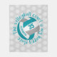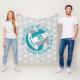 Diese niedliche und gürtelförmige Fleecedecke ist mit einem aquamarinen, grauen und weißen Volleyball umrahmt mit dem Text "Der Volleyballplatz ist mein glücklicher Platz" aquamarin in einem lustigen und lässigen handgeschriebenen Schriftart - der Hintergrund ist leicht grau mit einem "Polka-Punkte"-Muster kleiner weißer Volleybälle - ihr Name und die Jerseynummer sind individuell einstellbar - durch Katz_d_zynes