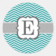 Aquamariner weißer Monogramm Buchstabe E Zickzack Runder Aufkleber