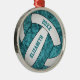 Dieser aquamarine und weiße Volleyballschmuck mit einem blumenkalidoskopischen Muster, das mit den aquamarinen Volleyballplatten vermischt ist, und einem subtilen künstlerischen abstrakten wirbelförmigen Muster, das mit den weißen Tafeln verschmolzen ist - ihr Name und das Weihnachtsjahr sind individuell einstellbar - von katz_d_zynes | Weitere Weihnachtsschmuck zum Thema Sport >>> https://www.zazzle.com/collections/119728248363801463
