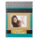 Personalisiertes aquamarines, schwarzes und goldenes Abschluss-Journal. Ein wunderschöner Goldrahmen für Ihr Foto und ein elegantes Label, das mit Ihrem eigenen Text personalisiert werden kann. Text, Schriftart, Schriftart, Farbe und Platzierung sind vollständig anpassbar, also machen Sie es zu Ihrem eigenen.