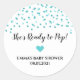 Sie ist bereit zum Pop Babydusche zu bevorzugen Anhänger Aufkleber mit türkis aquamarinen blauen Konfetti und Herz mit schwarzem Text. Ideal für eine Babydusche, um Popcorn-Gefallen zu dekorieren.