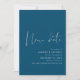Mit all den pandemischen Einschränkungen und Sicherheitsprotokoll, melden Sie Ihre Freunde und Lieben zu Ihrem neuen Hochzeitsdatum mit diesem modernen minimalistischen Ankündigungskarte Sprichwort "new date" in Kalligraphie Schrift und aquamarin blau Farbe Thema. Sie können auch das Foto auf der Rückseite personalisieren.