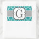 Aquamarines blaues Monogramm Buchstabe G Quatrefol Rechteckiger Aufkleber
