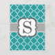 Aquamarines blaues Monogramm Letter S Quatrefolie Postkarte