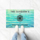 Aquamarines blaues Ombre Meer Mit Monogramm Outdoor Doormat. Eine Kompass-Rose, um Ihre Meereslager behalten. Genießen Sie den stilvollen optischen Täuschungseffekt mit den aquamarinen bis blauen Farbtönen im Hintergrund. Wassersport, Küstenschifffahrt, Strandhaus oder Segeln. Spaß, kokett und fabelhaft! Ändern Sie den Namen, die Empfindung oder das Monogramm, um es anzupassen.