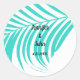 Aquamarines blaues tropisches Palmenblätterblatt S Runder Aufkleber