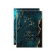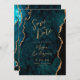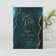 Diese elegante Hochzeit Save the Date zeigt ein Hintergrundbild des aquamarinen blauen Aquarelles, bestickt mit Imitaten goldenen Glitzer. Der anpassbare Text kombiniert goldfarbene moderne Handschrift, Copperplate und kursiven Schriftart. Die Rückseite ist mit einem aquamarinen und goldfarbenen Agatdesign abgestimmt.