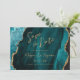 Diese elegante Hochzeitskarte Save the Date mit einem Hintergrundbild des aquamarinen blauen Aquarells besticht durch den vergoldeten Glitzer der Imitate. Der anpassbare Text kombiniert goldfarbene moderne Handschrift, Copperplate und kursiven Schriftart. Die Rückseite ist mit einem aquamarinen und goldfarbenen Agatdesign abgestimmt.