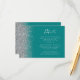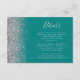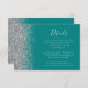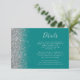 Der links Rand dieser eleganten, modernen Hochzeitsdetails-Umschließkarte zeichnet sich durch ein silbernes Imitat Glitzer-Design aus. Der individuell anpassbare Text verbindet handschriftlich, kopperplate und kursiv Schriftart auf aquamarinem, blauen Hintergrund. Die Rückseite ist mit einem aquamarinen und silbernen Glitzer-Design ausgestattet.