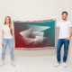 Weißgraue Dreiecke auf bordeauxfarbener, aquamariner Ölfarbe