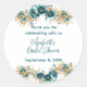 Schönes Brautparty bevorzugen Aufkleber mit aquamarinen und goldblühenden Blume in Aquarell gemacht. Alle Felder sind editierbar, sodass Sie Ihre eigenen Informationen eingeben können.
