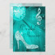 Personalisierte, elegante, individuelle Bridal Dusche Einladungen. Aquamarin-weiß-doppelseitig lädt Brautpartys mit einem funky-Retro-Disco-Spiegelball, glamourösem Kristall-Glitzer, Sequins, Bling-Juwelen funkeln High Heels Stilettos Schuhe, glänzende musikalische Noten / Musiknoten mit Glitzern auf einem aquamarinen türkisblauen Licht und Glitzern-Hintergrund ein. Chic, elegant, niedlich, mädchenhaft, modern mit trendigen, modischen Farben. Diese herzlichen, stilvollen, raffinierten, lustigen, hübschen Einladungen sind auf beiden Seiten dekoriert / bedruckt. Die perfekte Einladung für ein Dinner-Tanz-/Nachtklub-Tanz-Event. BITTE BEACHTEN SIE: Alle Einladungen auf Zazzle sind mit flachen gedruckten Bildern versehen. Wenn Sie Hilfe bei der Anpassung Ihres Produkts benötigen, kontaktieren Sie mich bitte über meinen Shop und ich werde Ihnen gerne weiterhelfen.