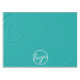 Maßgeschneidertes türkisfarbenes / aquamarines Tischtuch mit Ihrem Firmenlogo auf der Vorderseite, perfekt für die Tischgestaltung bei einer Fachmesse oder für den Einsatz bei einer Firmenveranstaltung oder einem Restaurant.