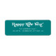 Ein skurriler Retro inspirierte Rücksendeadresse-Label mit "Happy New Year" in einem Vintag inspirierten Schriftart und Ihren Namen und Rücksendeadresse in aquamarin grün und weiß. Alle Farben (Hintergrund und alle Textelemente) können nach Belieben geändert werden!