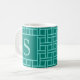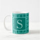 Aquamarines geometrisches Mustermonogramm Kaffeetasse
