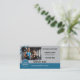 Visitenkarte mit Foto und Logo auf aquamarinem Blau mit grauem Design. Auf der Rückseite befindet sich eine QR-Code-Vorlage sowie ein anderes Foto. Sie können die Symbole der sozialen Medien nach Ihren Bedürfnissen ersetzen oder löschen. Ideal für Fitness-Experte oder Personal Trainer.