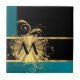 Aquamarines grünes Gold und schwarzes Monogramm Fliese