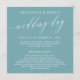 Ein eleganter Hochzeitstag mit eleganten Schriftart und einer zarten Kalligraphie-Schrift in aquamarinem Blau und Weiß. Fügen Sie Ihren Zeitplan und die Namen Ihrer Hochzeitsfeier! Sauber, einfach, zeitlos und elegant.