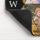 Stilvolles und einzigartiges Mauspad mit geometrischer Foto-Collage mit sechs Fotos in dreieckigen Rahmen. Fügen Sie Ihre Initial in Weiß zwischen zwei aquamarinen Schriftzeichen hinzu, die dem Schwarzweißmuster und dem aquamarinen karierten Muster entsprechen.