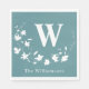 Ideal für Hochzeitsgeschenke, Jubiläumsgeschenke und vieles mehr, diese mit Monogramm Servietten sind mit ihrem ursprünglichen Familiennamen und ihrem traditionellen botanischen Kranz-Design aquamarin. Verändern Sie die Hintergrundfarbe einfach mit dem Tool, das Sie noch anpassen können.
