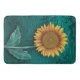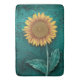 Eine lebendige Sonnenblume mit einer hellgelben Blütenwand und einem runden braunen Zentrum. Die Sonnenblume befindet sich auf der rechten Seite des Bildes. Um die Sonnenblume herum ist ein detailliertes, verziertes Design in einem türkisfarbenen Hintergrund geschnitzt. Dieses Design besteht aus komplexen Wirbel und Mustern, die Blumenmotiven ähneln. Der Stamm und die Blätter der Sonnenblume sind ebenfalls in einer ähnlich türkisfarbenen Farbe dargestellt, was einen harmonischen Kontrast zu den gelben Blüten bildet.