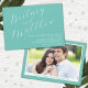 Aquamarine minimalistische Foto Hochzeitseinladung mit schlichter, eleganter Kalligraphie-Schrift für Braut- und Bräutigam-Namen.