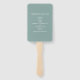 Behalt deinen Gästen cool und informiert mit diesem eleganten, aquamarinen Hochzeitsreisefan. Mit einem minimalistischen Design und moderner Typografie bietet dieser Handventilator eine raffinierte und praktische Touch für Ihre Hochzeitsfeier. Die weiche Farbe und das saubere Layout zeigen Ihre Details des Hochzeitsprogramms in einem stilvollen und leicht lesbaren Format. Diese Fans sind perfekt für jedes Hochzeitthema geeignet und sorgen dafür, dass Ihre Gäste sich bei der Begleitung Ihrer besonderen Tagesveranstaltungen wohl bleibe fühlen.