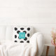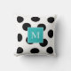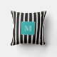 Moderne schwarze Punkte, schwarze Streifen auf weißem Kissen, skandinavische Art, aquamarines Monogramm, Kissen.