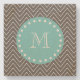 Aquamarines Monogramm des Holzkohlen-Grau-Zickzack Steinuntersetzer