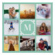 Fügen Sie acht eigene Fotos hinzu, um Ihr eigenes Hochglanzposter zu erstellen. Erstellen Sie eine Collage, um Ihre Fotos anzuzeigen. Acht Fotos in einem modernen minimalistischen Gitterdesign rund um ein aquamarin-weiß-griechisches Grenzmotiv. Das Monogramm, die griechische Grenze und die Hintergrundfarben können individuell angepasst werden. Der Schriftart des Monogrammes ist ein moderner Stil... es gibt noch andere klassische Stile für Ihren Anfang. Löschen Sie das Monogramm und fügen Sie personalisierten Text hinzu. Sie können auch die Randgrafik löschen.
