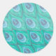 Aquamarines Pfauenfedermuster Runder Aufkleber