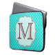 Aquamarines Quarterfoliengitter-Quarterfoil Monogramm Initial Personalisiert Custom Fabric Pattern 15" Laptop Case Bag